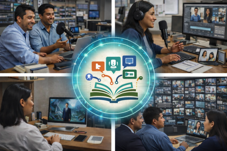 Su conocimiento no tiene por qué quedarse en un solo formato. Convertimos libros, investigaciones y mensajes clave en ecosistemas digitales vivos que se expanden en múltiples narrativas, formatos y audiencias. Diseñamos universos de contenido que crecen con la comunidad, se adaptan en el tiempo y generan impacto sostenido, combinando estrategia, creatividad e inteligencia artificial.